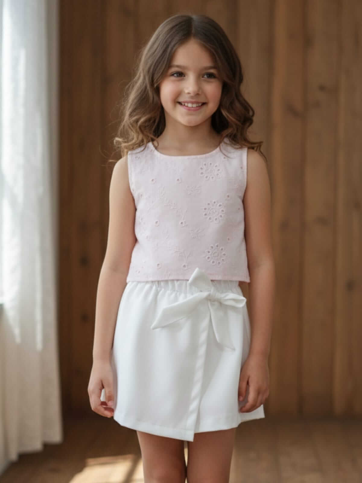 A Regata Dolce Laíse é confeccionada em tecido lesi , conhecido pela sua delicadeza e toque macio.