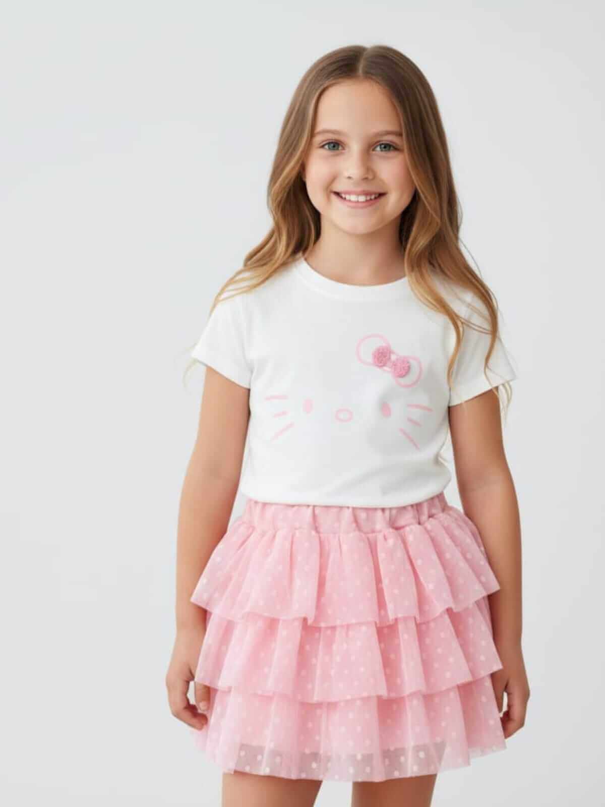 Possui estampa exclusiva com desenho que as crianças adoram e detalhe especial de laço em tricô,