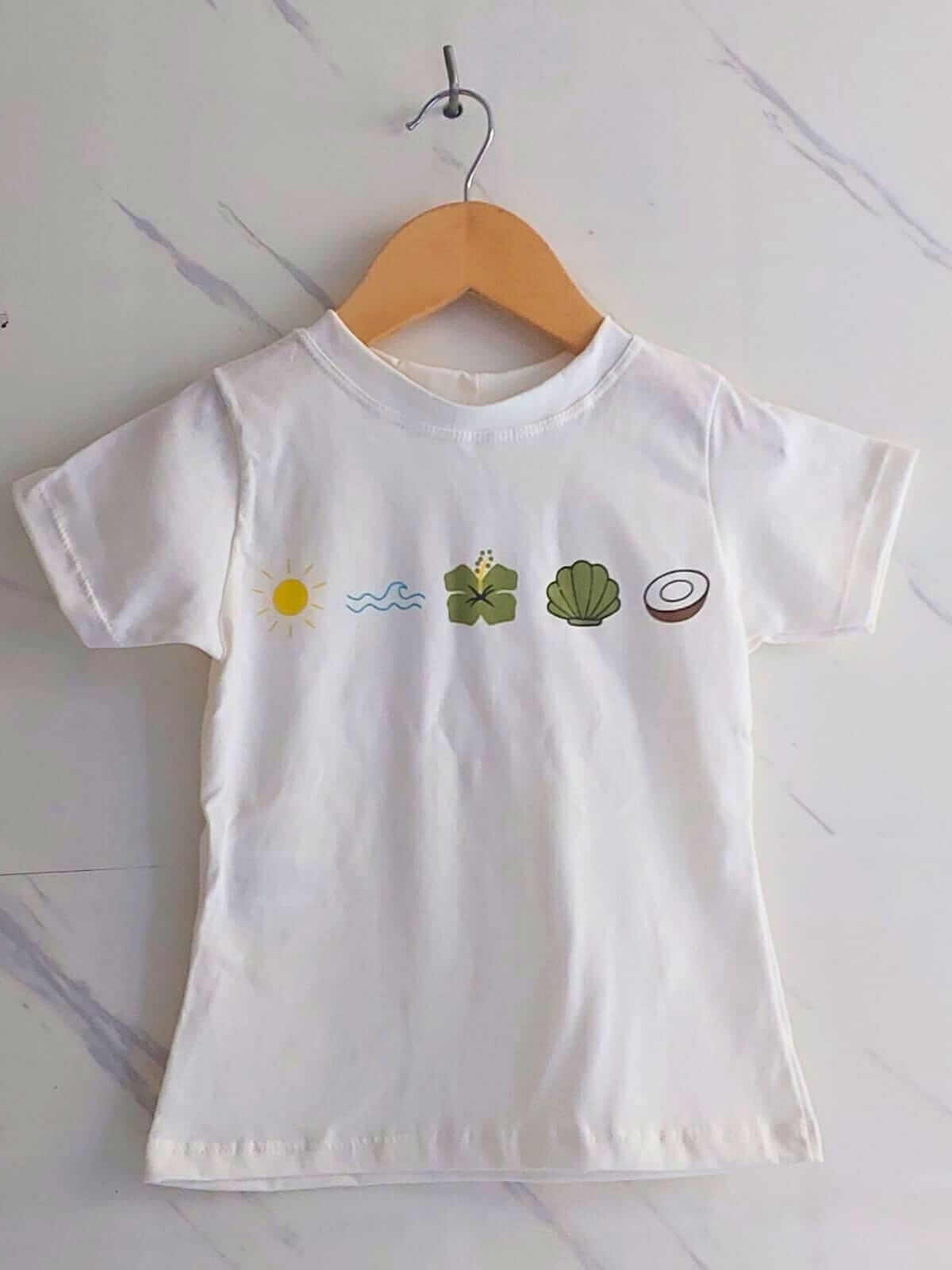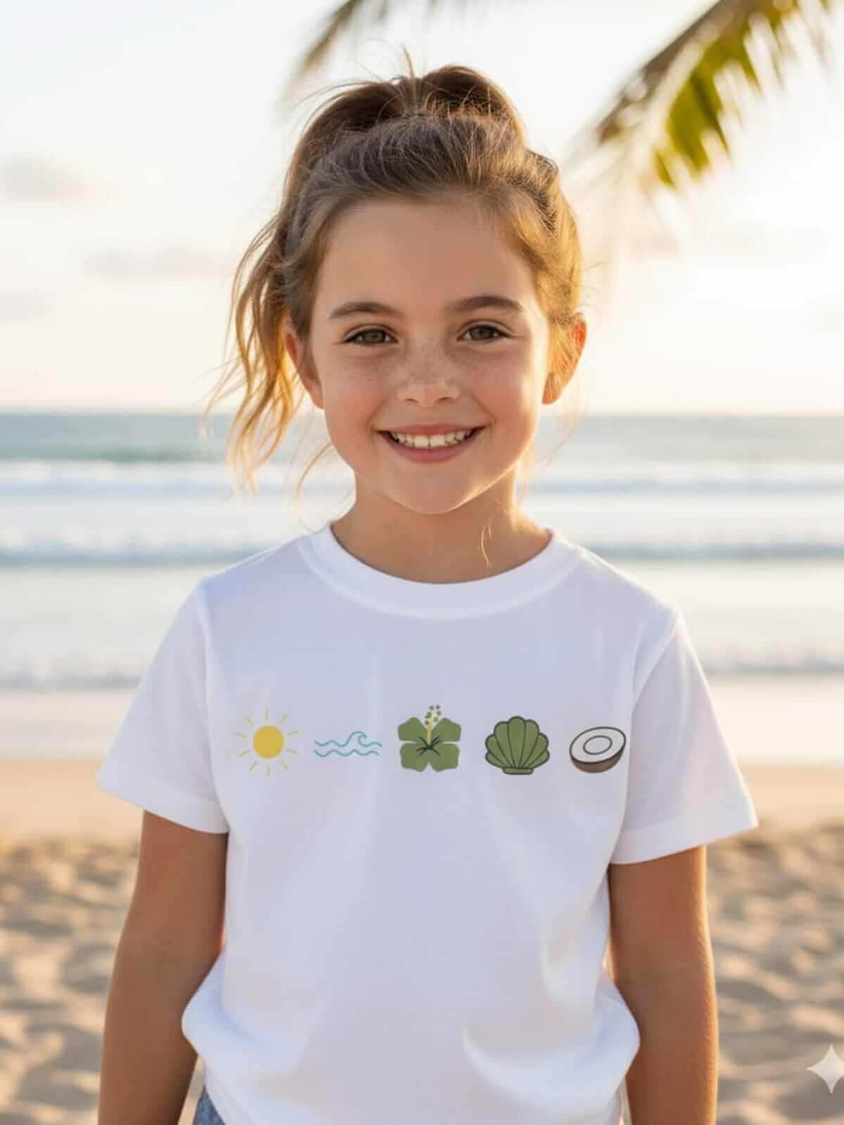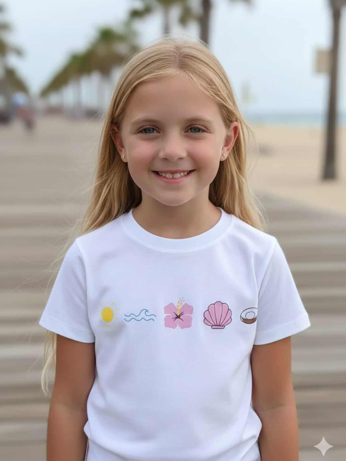 com elementos de conchas, coco, flores e o sol, trazendo aquele clima fresh e alegre que encanta no primeiro olhar.